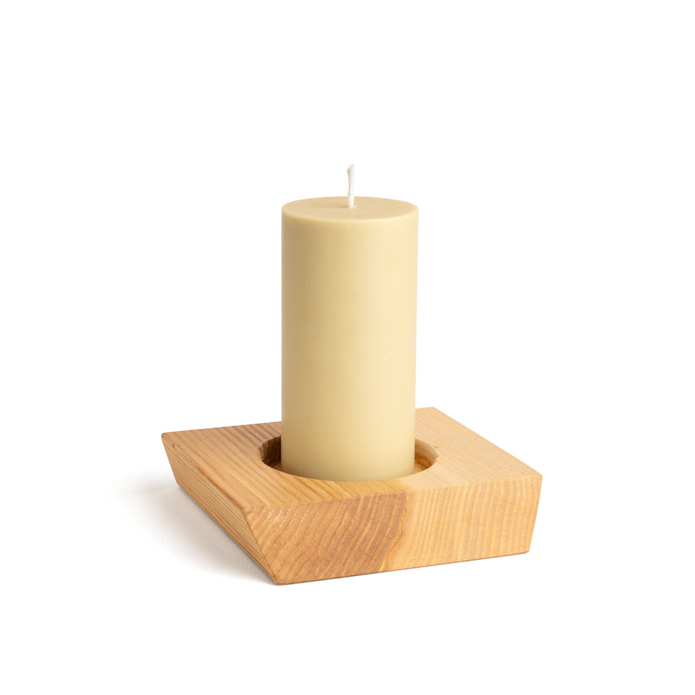Schlichter Kerzenhalter aus recyceltem Massivholz – wahlweise Eiche oder Esche. Sorgfältig geölt, um die natürliche Struktur des Holzes hervorzuheben.