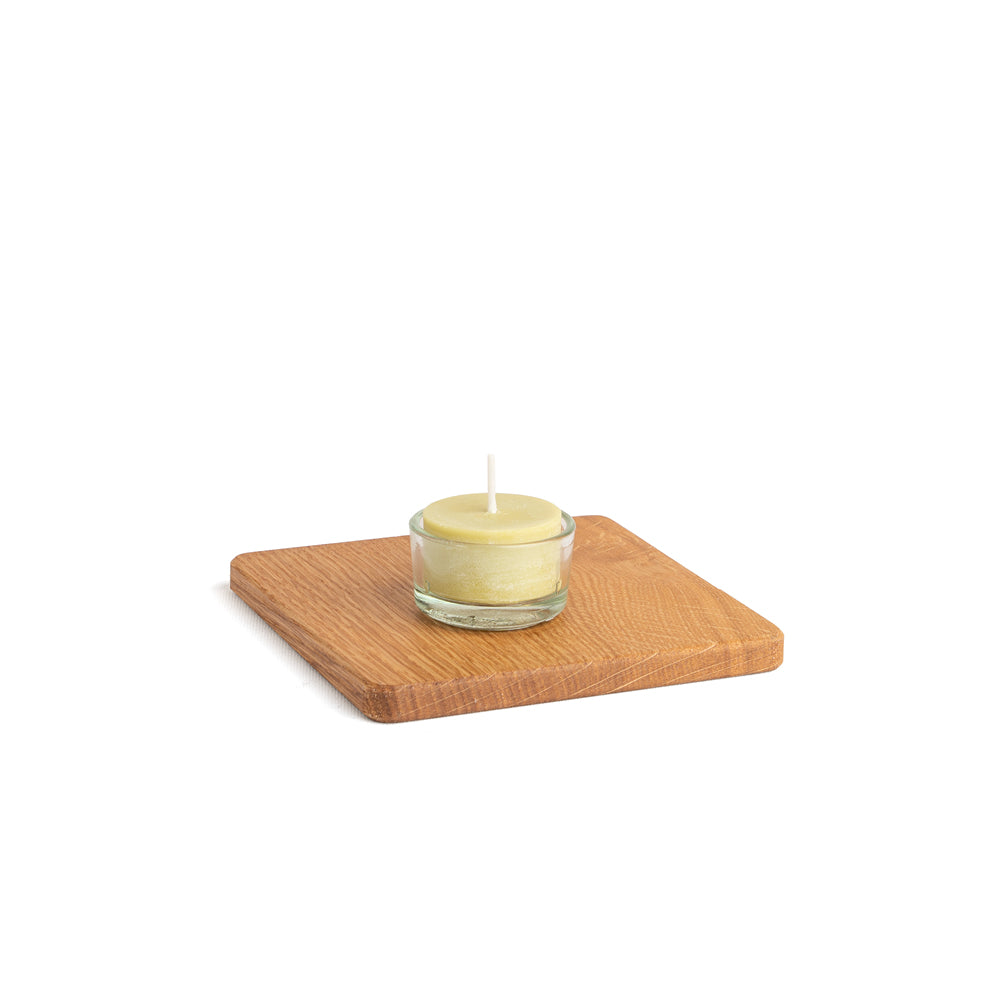 Untersetzer mit Glasteelicht – aus recyceltem Holz